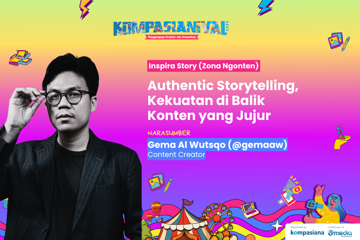 Kekuatan cerita autentik dalam sebuah konten bakal dibahas oleh @gemaaw di Kompasianival 2025. -